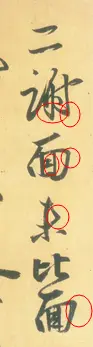 米芾外号米颠,但写字拐弯绝对不是癫狂无道,他的折笔的结实程度和精细程度宋以后绝对无人可敌,大家可以好好品一品图中的红圈 。