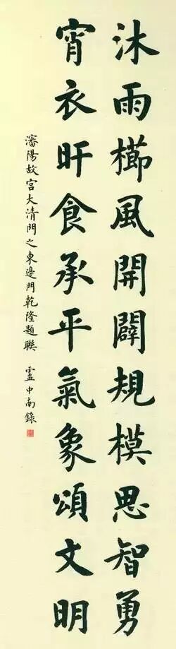 我们今天从北京故宫等处尚能观赏到一些楹联,虽或犹存明清科举所规范的馆阁遗风,仍可领略其书写者的满腹经纶而具有的大家气韵。
