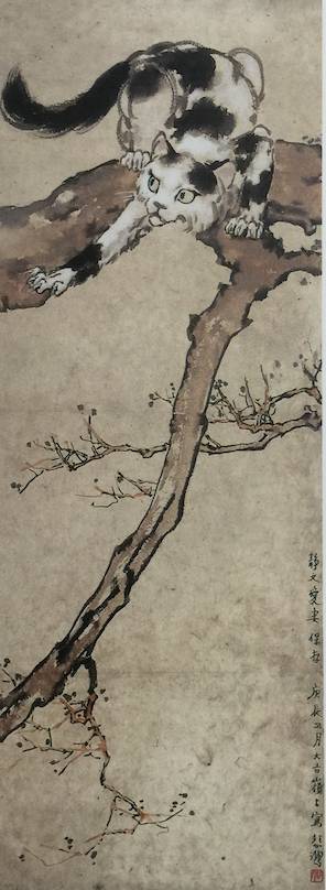 徐悲鸿的艺术语言,无疑是大师的风范。他的油画色泽浑厚华滋,凝重深沉,有北欧古典主义油画的遗韵,不事爽利夺目的笔触,不求轻薄浮泛的小巧,正中见奇,似奇反正。抒情、宁静的情调如《月夜》、《诗人陈散原》、《银杏树》、《徐悲鸿夫人像》,与中国画中的纵横之气相映成趣。徐悲鸿的线条铁划银钩,有深厚的传统书法功底。早年攻习《经石峪》、《爨龙颜》、《张猛龙》、《石门铭》诸名碑,晚年书道风华婉转之中又透露着朴茂古雅的奇趣,风格独特,蔚然大家。其所书“横眉冷对千夫指,俯首甘为孺子牛”,不惟内容是徐悲鸿先生的品格写照,而其书法风神,信为独立特行之士内心情感的倾泄。国画笔墨跌宕豪逸,其奔马、雄狮、巨柏、鸡、鹅、猫、雀,类能缘物寄情,直抒胸臆,兴之所至题跋随之,或忧或喜,或詈或谑,皆妙手文章、俯仰可得。其文也,以为得司马、韩柳之助,滔滔乎不绝,忽戛然而止,忽波涌泉注,畅其当畅,止其当止。记得可染吾师告我,1947年李可染画展之时,悲鸿于展前提笔为文,不假思索文日:“芒砀丰沛之间,古多奇士,其卓荦英绝者,恒命世而王,冠冕宇内,挥斥八荒……”真有席卷天下,包举宇内之势。故而悲鸿先生少年时署名“神州少年”、“江南贫侠”,非徒然也。其任侠之性、豪杰之情,终身未泯,其笔下豪气,固有所自,非画界抄袭剽窃之钝贼可梦见者。