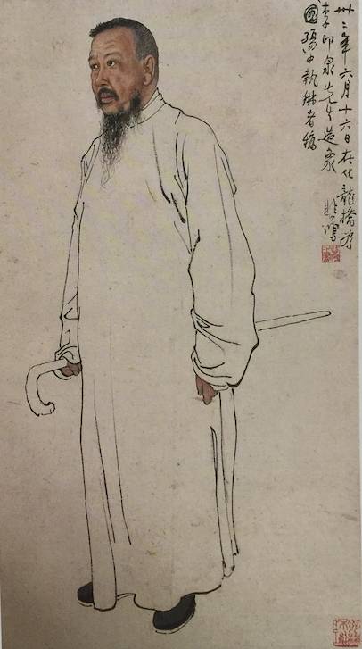 与先曾祖范伯子先生同时领袖同光诗坛并结为亲家的陈散原先生,在徐悲鸿笔下是一位何等清高绝俗而又敦厚朴雅的蔼然长者。悲鸿先生以对前辈的钦敬之情,描画诗人“思接千载”的风容,诗人那阅尽沧桑、悲满潭壑的神态,使我回想起当年曾祖伯子先生与散原同游江宁楼台时写下的诗句:“应疑从古高寒月,只照人间百尺楼。”这清明高寒的境界,恐怕只属于相知相善的诗人,也只有洞察入微的徐悲鸿能体会诗人内心的高逸。