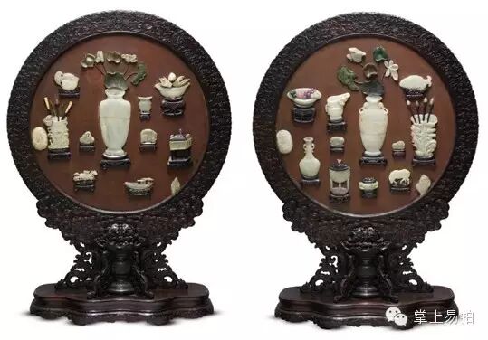 清乾隆御制紫檀漆地嵌玉圆光座屏
