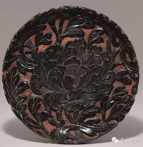 明万历 红地剔黑牡丹纹盘