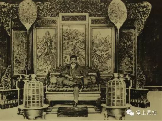坐在中国清朝宝座上的山中定次郎