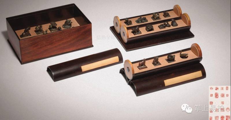 古铜印二十颗 配紫檀嵌黄杨书形收藏盒