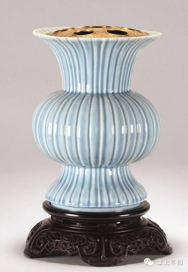 清雍正 天青釉花口尊
