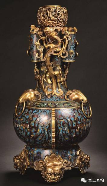 清康熙 掐丝珐琅三羊兽足贯耳大瓶