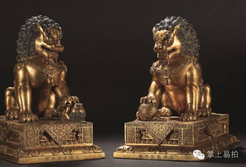清乾隆 铜鎏金狮子一对