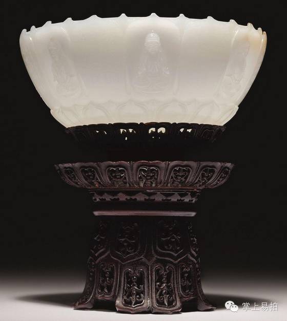清乾隆 白玉佛经莲花供碗