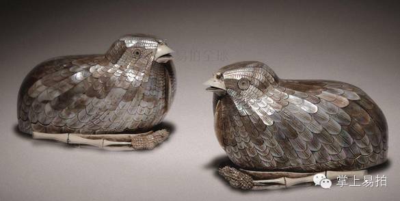 清中期 嵌螺钿鹌鹑盒一对