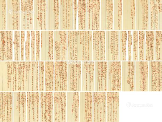 乾隆帝1776年作御製朱筆詩稿紙本鏡心以1300萬起拍,買家緊張出價,將價格推向1900萬,最終以1900萬的價格落槌。 此件拍品除了故宮,這是唯一乾隆帝御制朱筆詩稿,之前估價1500萬—2000萬,尺寸不一。