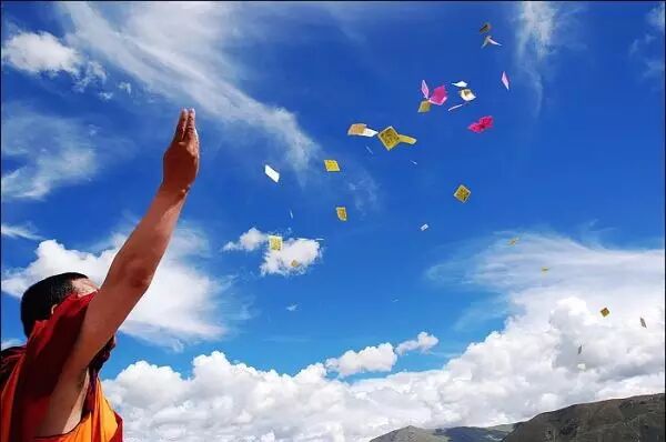 2、跟着转山的藏民一起抛洒一次七彩龙达,让风把你最美好的心愿带给佛祖。
