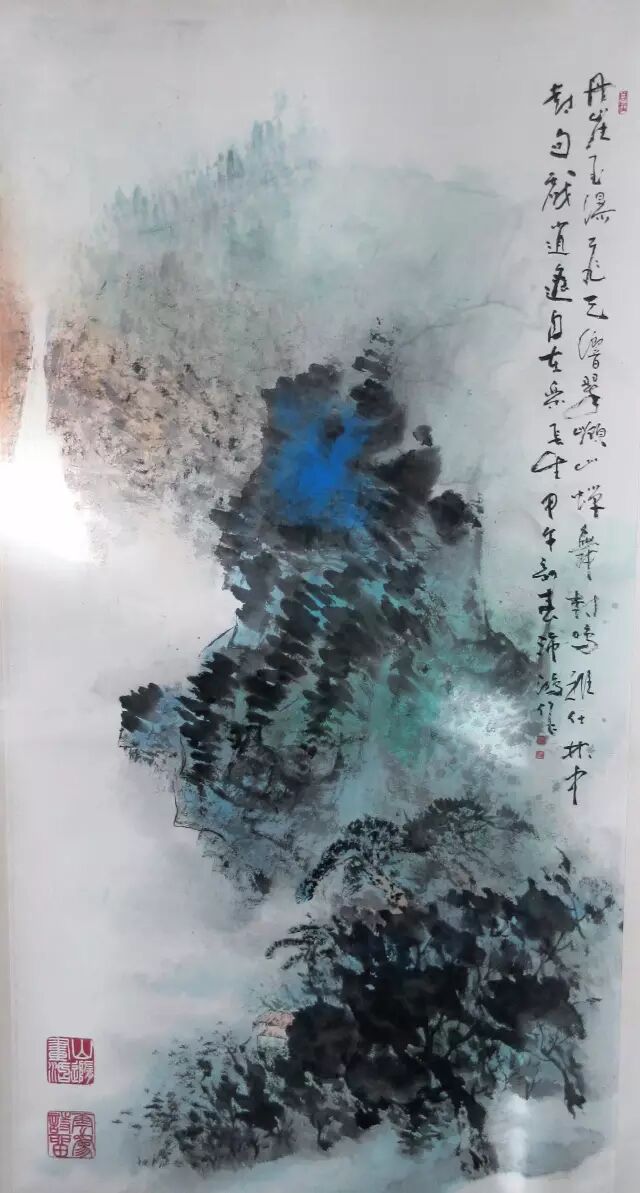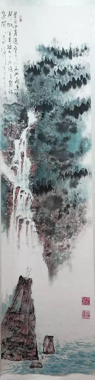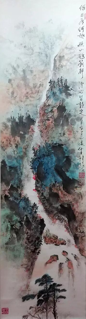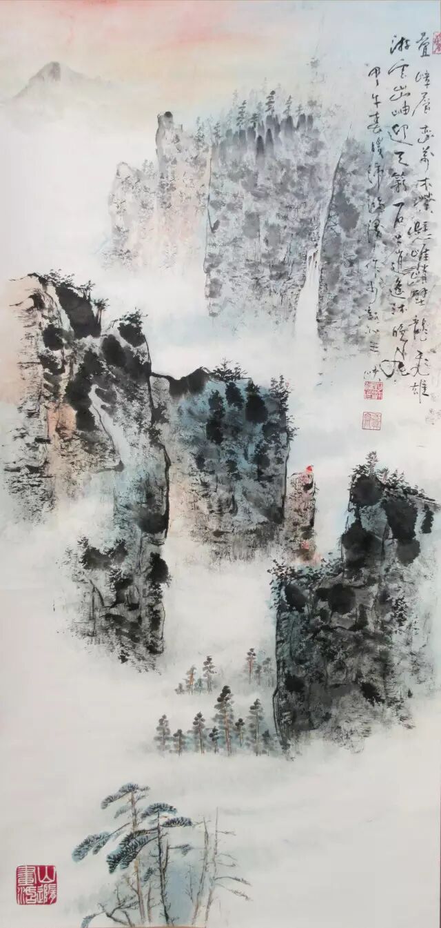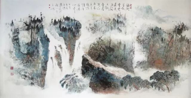明代吴宽在《书画筌影》云:“胸次洒脱,中无障碍,如冰壶澄澈,水镜渊渟,洞鉴肌理,细观毫发,故落笔无尘俗之气。”中国的山水画历史悠久,为山川立言,为自然传神,为主体达意,直抒胸中臆气是中国画的最高境界。柯沛鸿的山水画之所以能给人一种直抵佛心的感悟,是同他对佛教的深入体悟和对中国传统文化的系统研究分不开的。柯沛鸿认识到中国山水画强调的气象,格调,境界,都深受佛教影响或者说来自佛教思想。