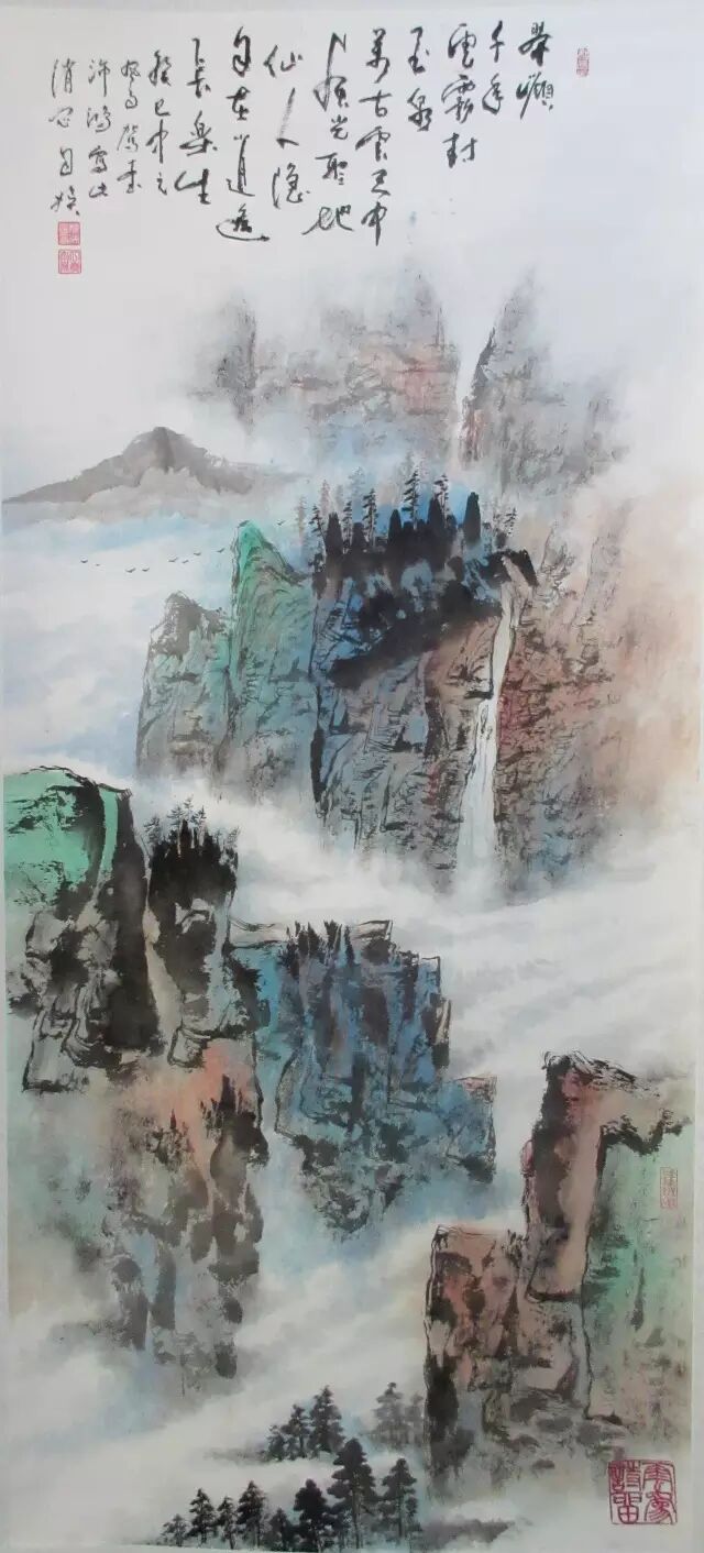唐代刘禹锡在《陋室铭》中说:山不在高,有仙则灵。面对柯沛鸿的山水画,站在平地,望着幽幽的深谷,静从四面八方袭来,这份宁谧澄澈中照见了自己。一柱清香,一个蒲团,随缘度日。清风明月,仰天一笑,快意人生。