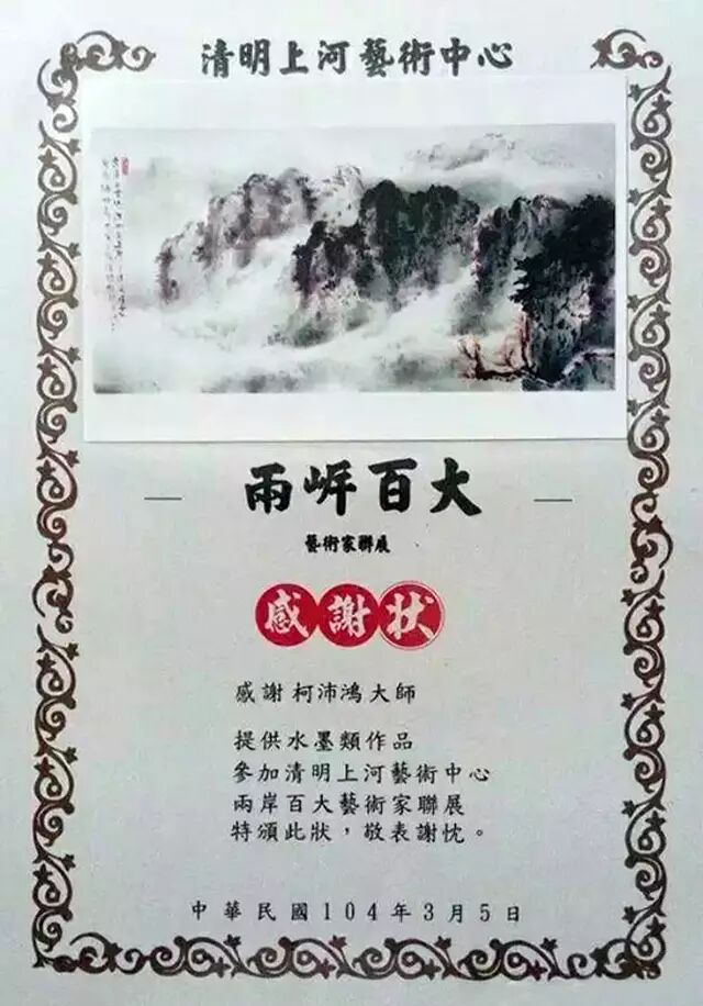 柯沛鸿画作曾于国父纪念馆及中正纪念堂联展多次,并在清明上河艺术中心、韩国首尔个展。